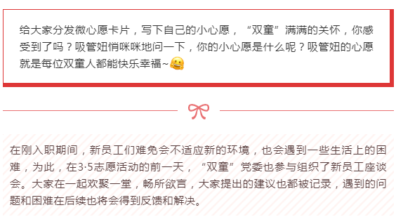 大家寫(xiě)下的心愿卡和建議都已被查收,吸管妞希望大家以后遇到什么困難都可以積極反饋,“雙童”會(huì)盡力去解決每一件事,讓大家感受到“家”的溫暖~