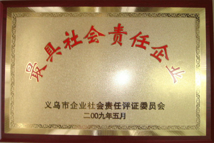 5月22日下午,義烏市總工會(huì)在北苑街道多功能廳舉行由浙江大學(xué)社會(huì)保障與公共政策研究中心(LEPP)確認(rèn)的最具社會(huì)責(zé)任企業(yè)頒獎(jiǎng)儀式,吳森民副市長(zhǎng)出席會(huì)議并作了重要講話。我司經(jīng)評(píng)審符合企業(yè)社會(huì)會(huì)責(zé)任義烏標(biāo)準(zhǔn)YW2009全部條款的要求,并被授予“最具社會(huì)責(zé)任企業(yè)“稱號(hào)。