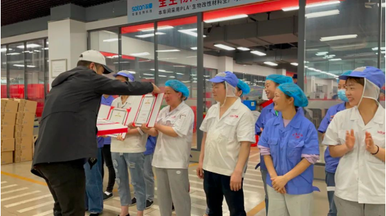 公司副總經(jīng)理李秀前為獲獎員工頒獎
