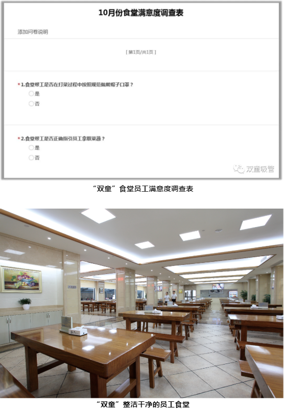 “雙童”每月會進行2次員工滿意度調(diào)查,抽取60名員工對食堂工作進行評價,調(diào)查結(jié)果將直接影響后勤餐飲團隊的績效考核。這也讓“雙童”后勤餐飲團隊進一步重視員工的需求,服務是否到位,及時調(diào)整飯菜風味和菜品等。