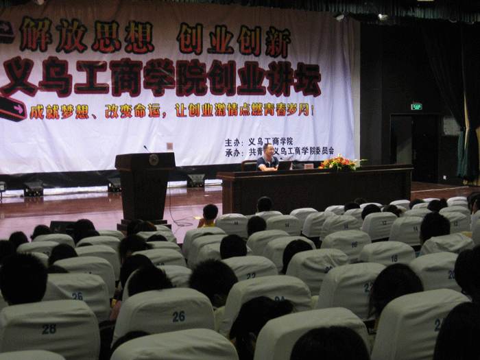 2009年6月8日晚上6:30,公司董事長(zhǎng)樓仲平應(yīng)邀到義烏工商學(xué)院授課,本次授課以“成就夢(mèng)想、改變命運(yùn),讓創(chuàng)業(yè)激情點(diǎn)燃青春歲月”為主題。參加聽(tīng)課的有包括“工商管理系”、“社會(huì)實(shí)踐系”在內(nèi)的1000多名商院在校師生。樓仲平主要就他創(chuàng)辦“雙童吸管”公司多年以來(lái)的經(jīng)歷和成功經(jīng)驗(yàn),突出講解了創(chuàng)業(yè)者創(chuàng)業(yè)初期所必備的良好心態(tài)和不斷學(xué)習(xí)對(duì)創(chuàng)業(yè)的重要性。授課內(nèi)容通俗易懂,授課方式幽默風(fēng)趣,課堂上還安排了學(xué)生現(xiàn)場(chǎng)提問(wèn)的方式,整個(gè)氛圍輕松愉悅,受到全體師生的一致好評(píng)。
