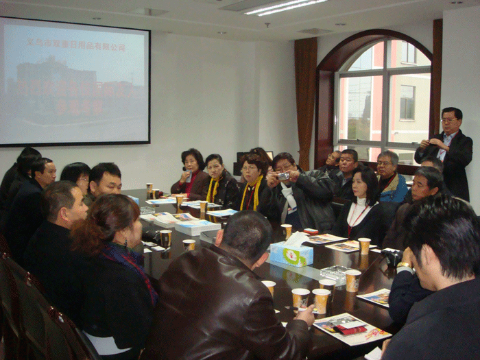 今天上午10:05分,在義烏市對外經(jīng)濟(jì)貿(mào)易合作局副局長姚咸明的陪同下,日本沖繩縣考察團(tuán)一行到我司參觀考察,副總經(jīng)理張國俊、張洪潮出席接待并陪同考察。