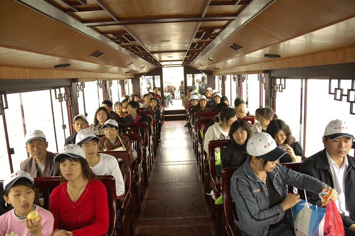 上圖:雙童旅游團(tuán)乘座西湖水上油輪
