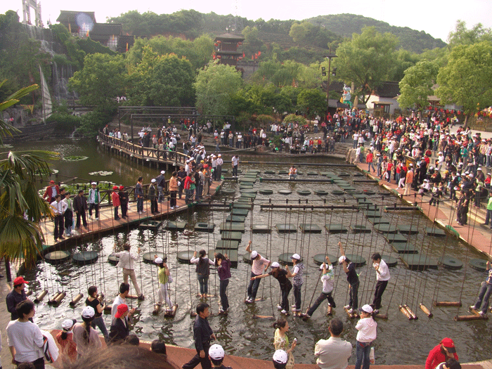 上圖:雙童旅游團(tuán)在宋城游玩水上娛樂(lè)項(xiàng)目