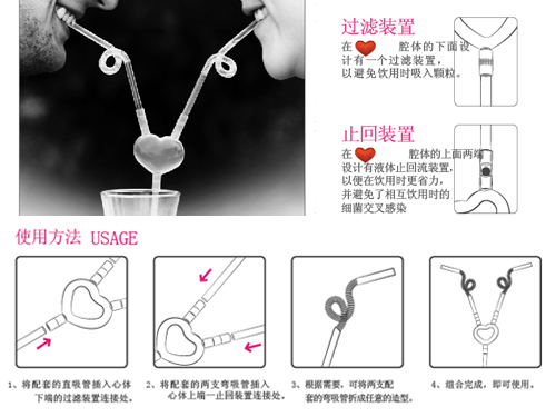 由雙童吸管全新獨(dú)創(chuàng)設(shè)計(jì)的全球?qū)@a(chǎn)品“愛心吸管”: