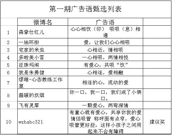 被征集的廣告語(yǔ)將用于我們 “愛心吸管”產(chǎn)品所有包裝正面的廣告詞。
