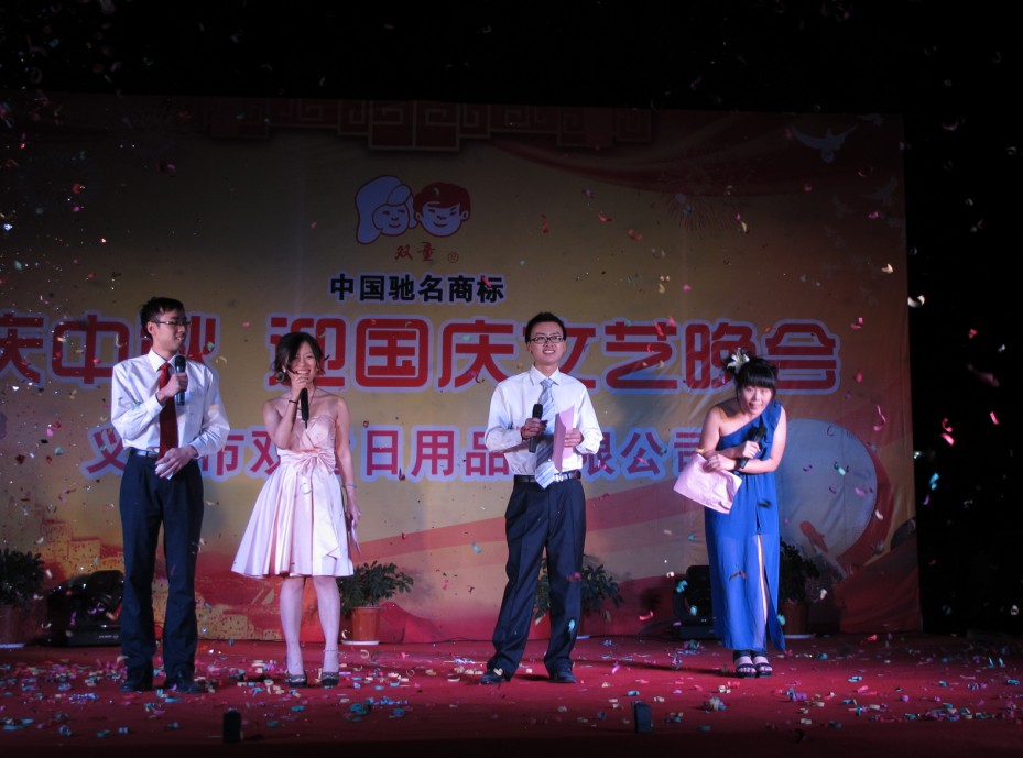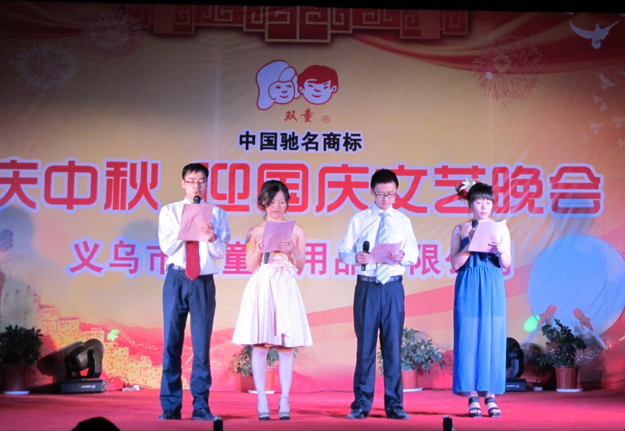 為了迎接祖國63誕辰紀(jì)念日,巧逢中國傳統(tǒng)節(jié)日“中秋節(jié)”來臨之際,我們雙童吸管特舉辦大型“慶中秋•迎國慶”主題聯(lián)歡晚會(huì)。晚會(huì)于9月29日18:30分在本公司隆重舉行!一場(chǎng)別出心裁的文藝晚會(huì)在董事長(zhǎng)樓仲平的致辭祝福聲中拉開帷幕。