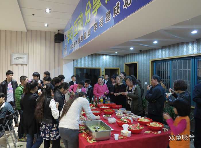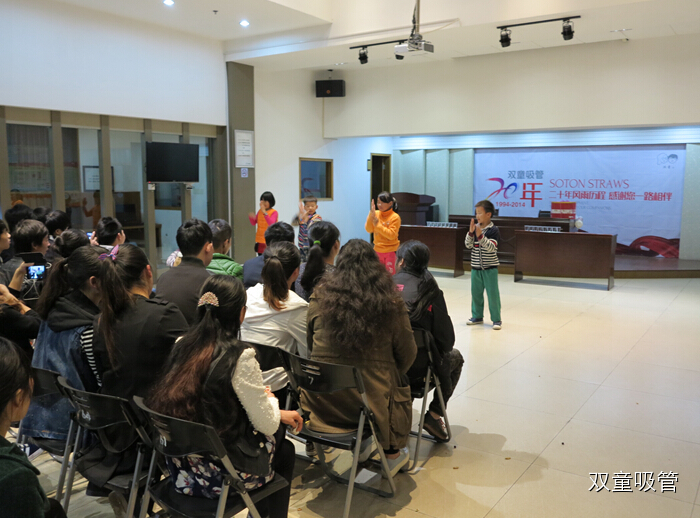 首先,這期生日會的第一個不同之處,就是參與生日會的人員注入了新鮮的血液!我們請來了第三代雙童人——隨父母居住在雙童的孩子們,為壽星們跳了一段熱情洋溢的舞蹈——《小蘋果》!看著孩子們駕輕就熟的表演,吸管妞也鬼馬地讓他們的“生產(chǎn)商”廠長李秀前和廠長夫人上臺,讓孩子們教兩位如何跳“小蘋果”!一番折騰下來,不僅讓在座的各位壽星笑得前仰后合,更讓跳的手腳不知道怎么放的廠長李秀前感嘆道:長江后浪推前浪,前浪死在沙灘上?。?/span>