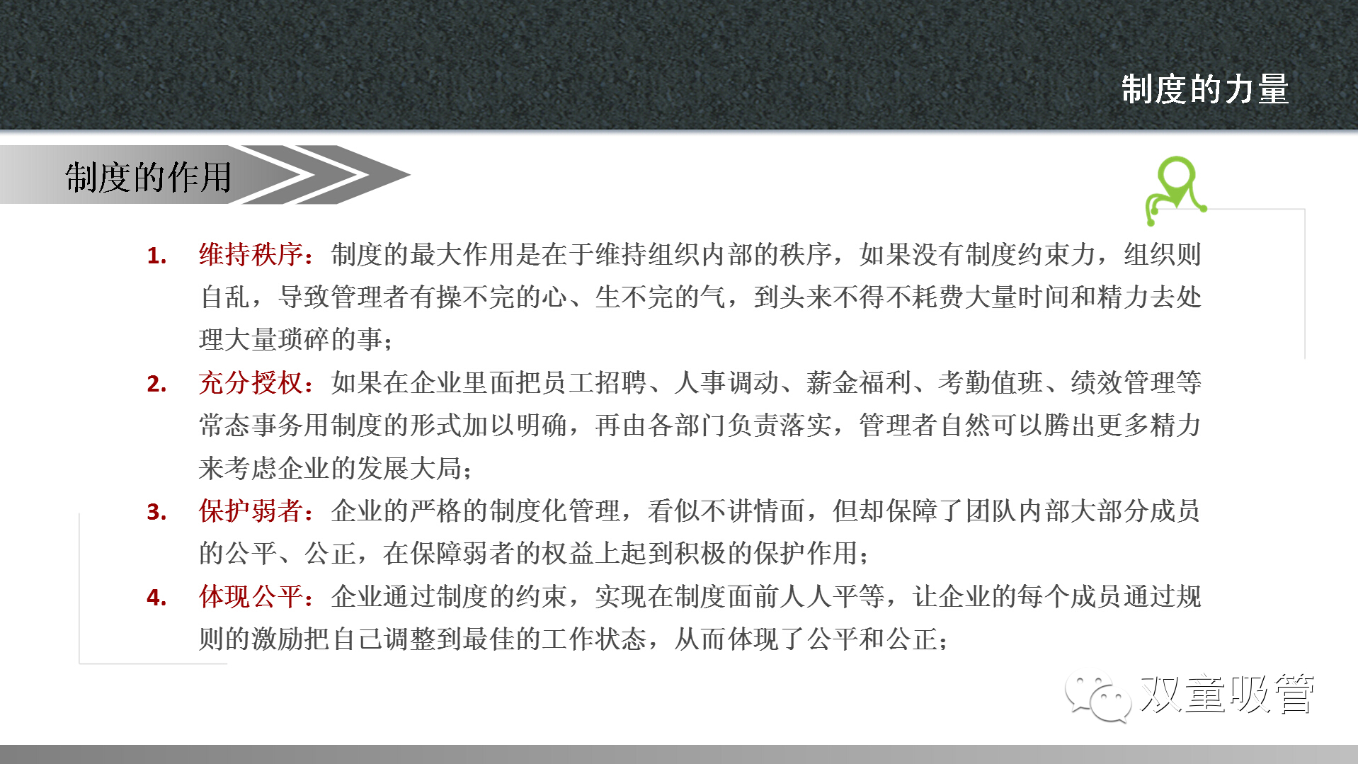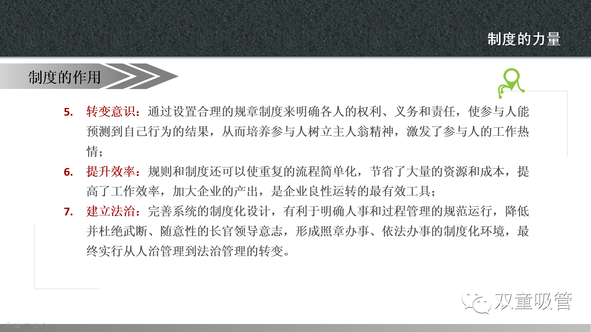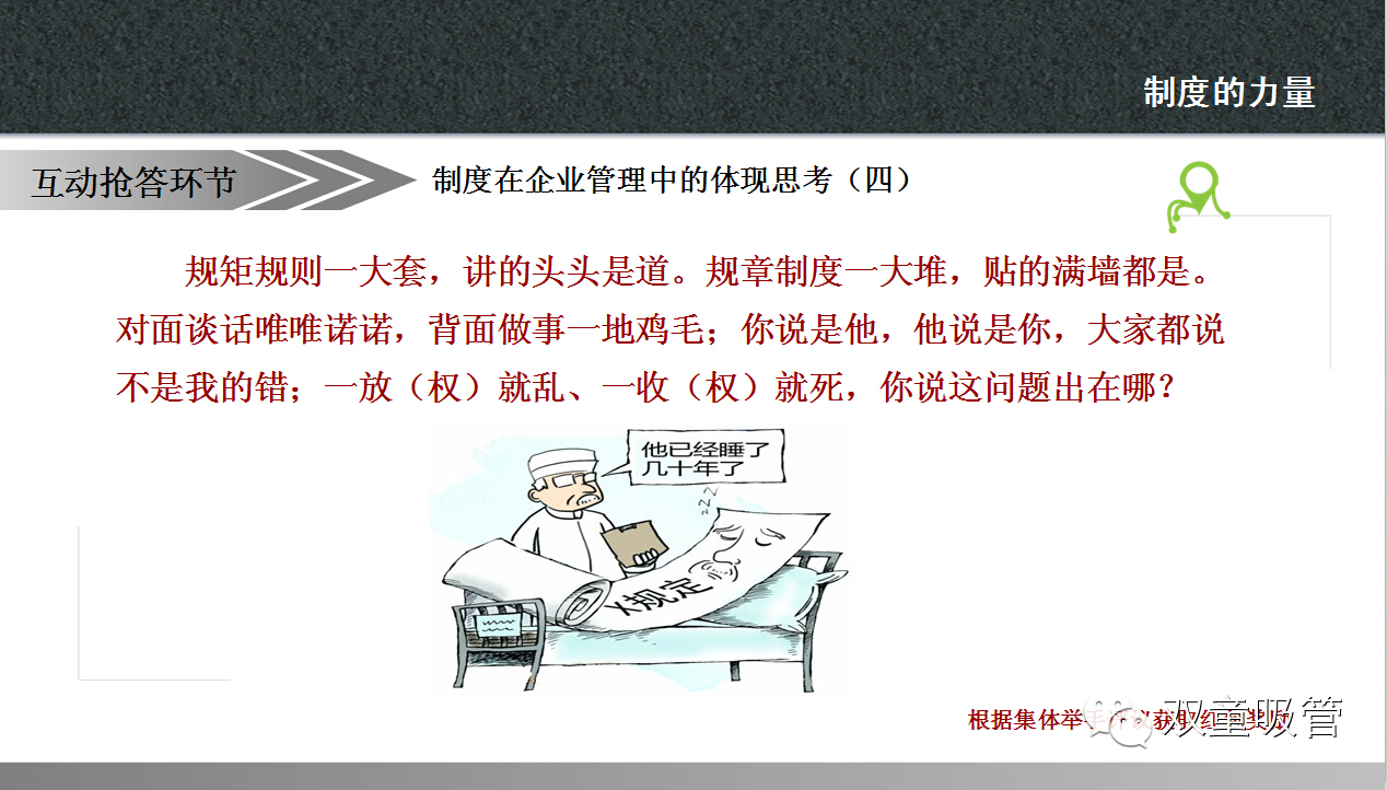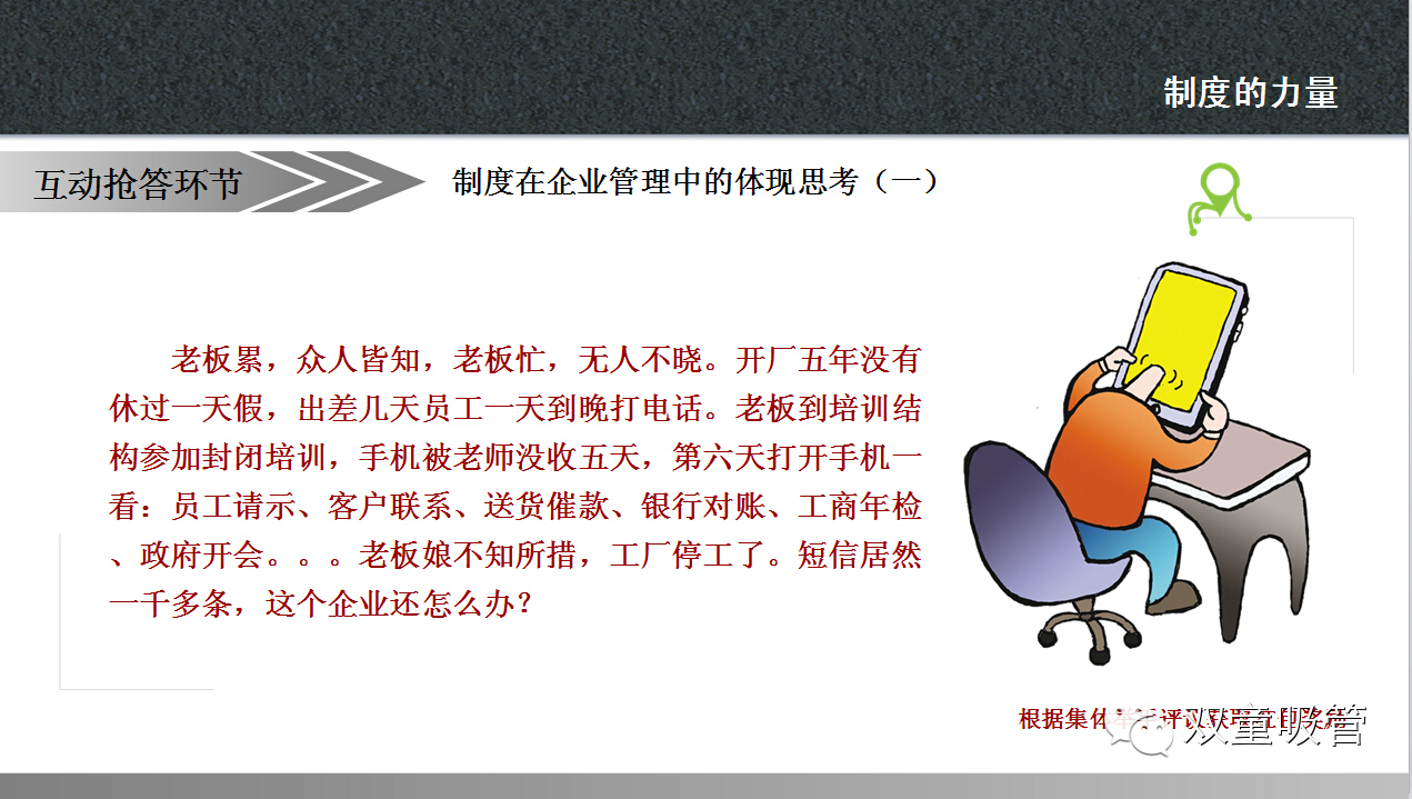 當(dāng)然啦,這樣的案例,當(dāng)家人準備了許多,讓大家在快樂中學(xué)習(xí)到了制度的魅力。以前吸管妞總是有一種誤解,覺得制度就是上級用來管理下級的一種方式。通過昨天的課程終于讓妞明白了,原來制度不僅僅是有利于上級管理,更有利于雙方的權(quán)利得到保障,讓公司的流程化管理更加準確高效!下面,吸管妞就把干貨放上來,大家可要好好看哦!