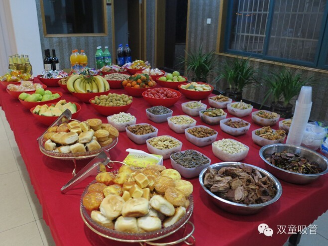 昨天晚上,我們雙童吸管的九樓閣迎來了2015年第一場生日會!來自各個車間、各個崗位的1月壽星們紛紛來到9樓,參加這場別開生面的生日會!而為了這場生日會,我們最新上任的后勤美女主管宋小翩更是下足了心思,把一切事宜都準(zhǔn)備得井井有條,看看這擺盤,誘人不?