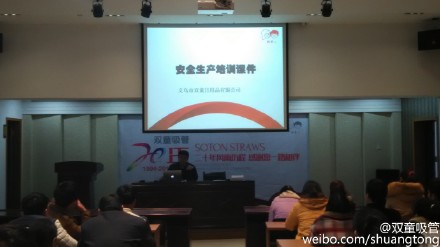 在第一場新員工培訓會上,人手一本的雙童吸管員工手冊,供新同事們閱讀,再由辦公室吳主任吳小彬進行逐條講解。相信經(jīng)過此次培訓,新同事們都能很好的學習并了解到有關雙童的所有信息與制度。第二場雙童吸管新員工培訓會正待開場。本場學習會將由我們雙童的美女后勤主管宋翩童鞋跟新同事們分享員工寢室衛(wèi)生安全培訓的課程。說完后勤生活,我們質檢部主管與新同事們分享質量意識培訓。課程涉及何為質量,質量的基本概念,質量的控制等有關產(chǎn)品質量管控的內容。產(chǎn)品質量是企業(yè)的根本,對新員工進行有關質量的培訓,是一項極為重要的工作!而安全,是生產(chǎn)工作中的重中之重!安全這個需要我們一提再提的話題,就由兼任我們雙童的消防隊隊長的廠長來跟新員工們分享!