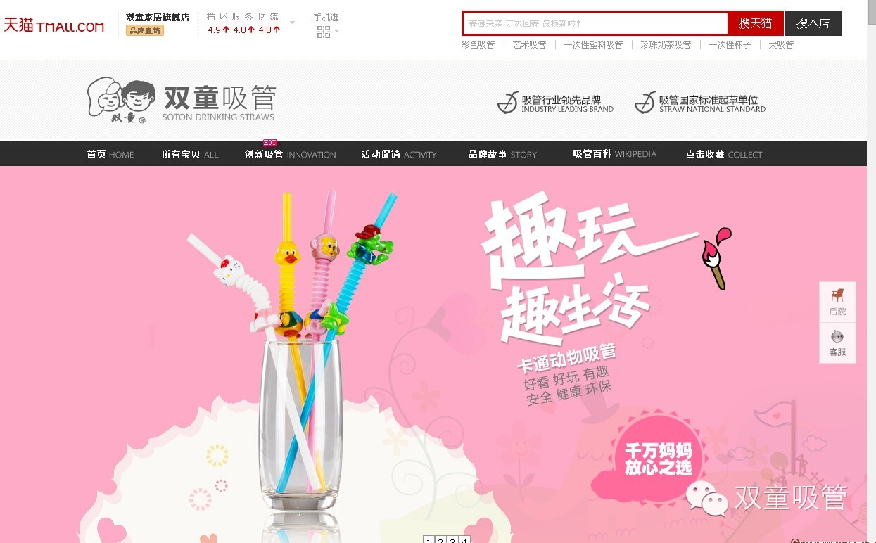 當(dāng)然@雙童吸管 的電子商務(wù)發(fā)展過(guò)程,也是伴隨著時(shí)代發(fā)展的腳步而與時(shí)具進(jìn)的。近些年以來(lái),在信息化浪潮推動(dòng)下,企業(yè)和市場(chǎng)、企業(yè)和客戶的傳統(tǒng)階梯式營(yíng)銷格局逐漸被打破,企業(yè)直面市場(chǎng)、直面客戶的溝通方式被信息化和迅猛發(fā)展的移動(dòng)互聯(lián)網(wǎng)無(wú)限拉近,企業(yè)的銷售格局進(jìn)一步被扁平化。快速與市場(chǎng)融合,快速與消費(fèi)用戶互動(dòng)溝通的體驗(yàn)需要,要求企業(yè)轉(zhuǎn)變?cè)袉渭兊腂2B電子商務(wù)推廣應(yīng)用模式,改而需要進(jìn)一步建立與顧客直面互動(dòng)體驗(yàn)的B2C電子商務(wù)銷售模式。