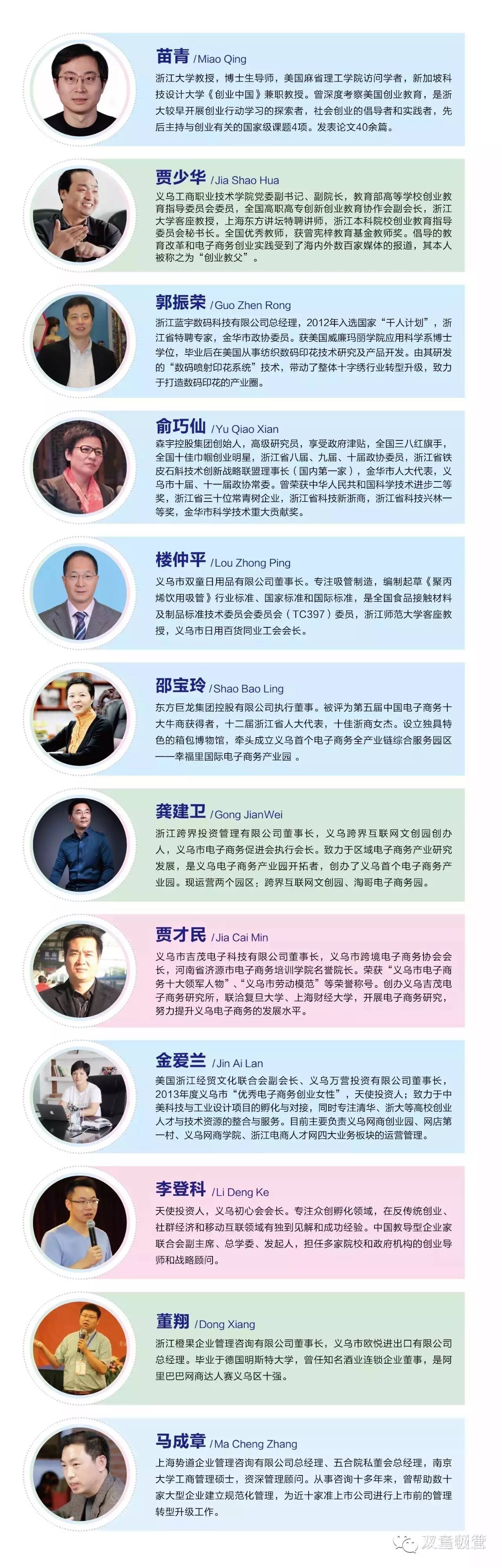 義烏市人力資源和社會(huì)保障局已經(jīng)聘請(qǐng)了12位首批義烏市創(chuàng)業(yè)導(dǎo)師,為創(chuàng)業(yè)學(xué)院服務(wù)。這些導(dǎo)師的含金量非常高:浙江大學(xué)博士生導(dǎo)師苗青教授,義烏工商職業(yè)技術(shù)學(xué)院黨委副書(shū)記、副院長(zhǎng)賈少華,2012年入選國(guó)家“千人計(jì)劃”、浙江藍(lán)宇數(shù)碼科技有限公司總經(jīng)理的郭振榮、森宇控股集團(tuán)創(chuàng)始人俞巧仙……而當(dāng)家人作為12位導(dǎo)師中之一,也深感榮幸,在朋友圈感慨地寫(xiě)道:參加義烏創(chuàng)業(yè)學(xué)院成立大會(huì)并很榮幸受聘為首批十位創(chuàng)業(yè)導(dǎo)師之一。我自己創(chuàng)業(yè)三十五年,一步步跌倒、一次次爬起。從雞毛換糖到大學(xué)講堂傳授,只要努力沒(méi)有什么不可能的。