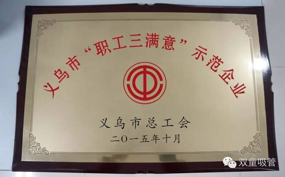 在雙童的行政樓走道上,掛著七八十塊的榮譽牌匾,這塊榮譽墻一直都讓雙童人引以為傲!近日,我們的榮譽墻又多了一塊榮譽牌——“義烏市‘職工三滿意’示范企業(yè)”。