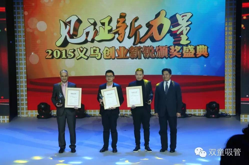 此次頒獎盛典的主要目的,是為層層推薦評選出的20名新一代創(chuàng)業(yè)者頒發(fā)“義烏創(chuàng)業(yè)新銳”稱號,以此進(jìn)一步弘揚(yáng)“雞毛換糖”精神,助推“大眾創(chuàng)業(yè)、萬眾創(chuàng)新”。獲獎人群中有來自新絲路的開拓者、有創(chuàng)業(yè)創(chuàng)新的生力軍、有懷揣夢想的新義烏人、有全面融入義烏的外商,他們都是身邊的看得見、摸得著、學(xué)得到的創(chuàng)業(yè)青年楷模。我們的二當(dāng)家李二橋也是“創(chuàng)業(yè)新銳”之一,看,市里領(lǐng)導(dǎo)都出席為“創(chuàng)業(yè)新銳”們頒獎了呢。