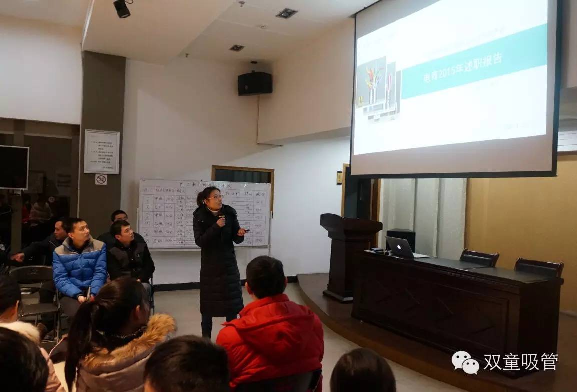 而在昨天的“雙童吸管2015年述職報告”會議上,包括總經(jīng)理李二橋在內(nèi)的4位述職人員,就用翔實的數(shù)據(jù)、充足的事例,向在座的各位同事闡述了各部門一年來的工作成果與缺點不足,并對新一年的工作目標做出了合理規(guī)劃。