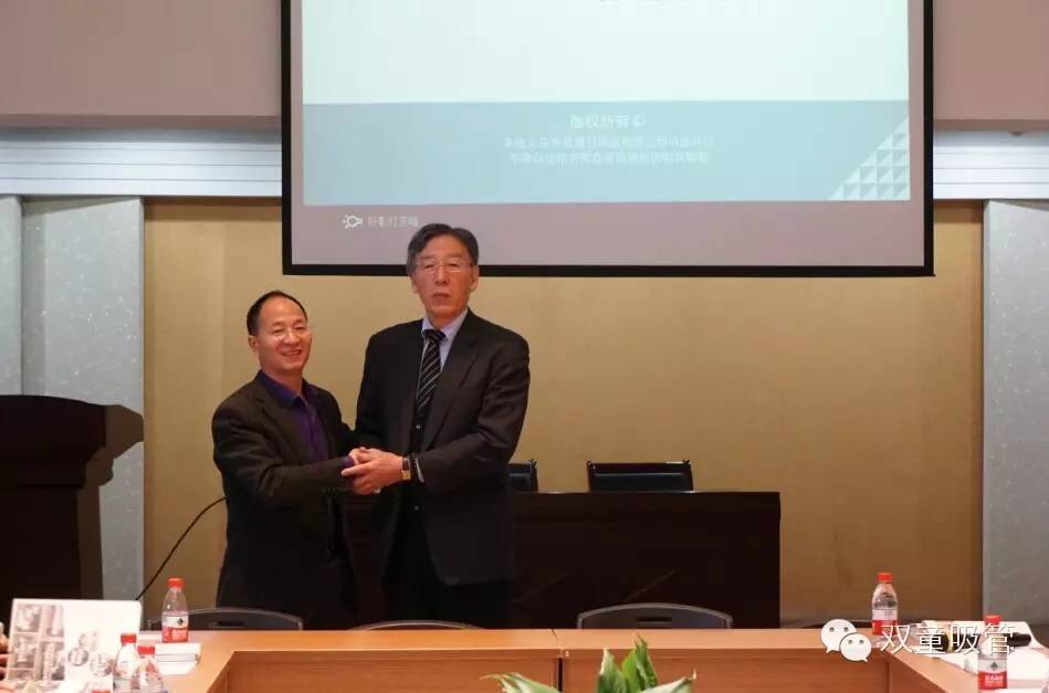 參觀完畢,大家來到九樓閣入座,靜靜地聆聽當(dāng)家人樓總介紹雙童的發(fā)展歷程及經(jīng)營理念。雖然語言翻譯需要借助翻譯的轉(zhuǎn)達,但大家依舊沒有受到影響,日本人的認真態(tài)度實在是值得我們國人學(xué)習(xí)!