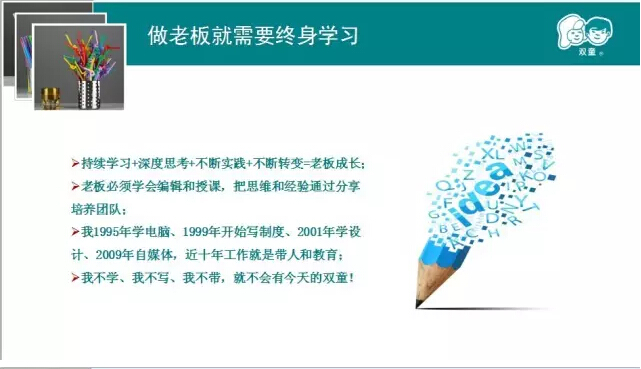 創(chuàng)新需要戰(zhàn)略內(nèi)心,需要十年為一個(gè)單位的恒心。無(wú)論難易,要有耐心!這種耐心至少要堅(jiān)持五年、十年。二十多年的商業(yè)積累,造就了雙童的差異化和無(wú)可復(fù)制。