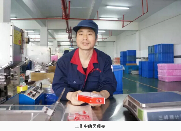在提及家庭時(shí),吳現(xiàn)亮開心的笑了!原來,他的老婆和女兒現(xiàn)在都在雙童工作呢。2015年,吳現(xiàn)亮剛來沒多久,女兒吳香也一起來到了雙童,在二車間工作。同年5月,父女倆覺得公司挺好的,一合計(jì),吳現(xiàn)亮把老婆也接了過來,在三車間從事包裝的工作。在提到為何會(huì)選擇留在雙童時(shí),吳現(xiàn)亮說:“干一行愛一行,我喜歡這里所以留在這里。”