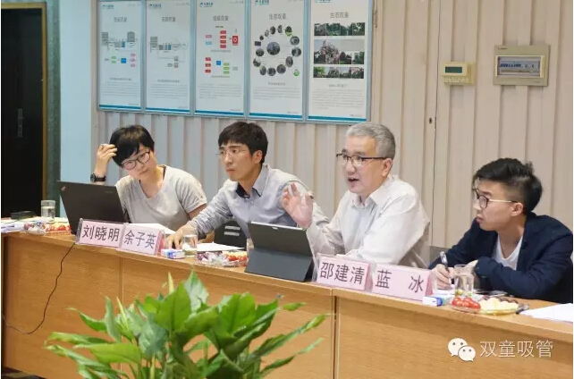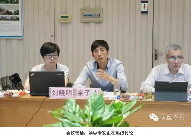 會議中,“雙童”董事長樓仲平向各位領(lǐng)導(dǎo)闡述了“雙童”一直以來對標準化工作的重視,并是目前浙江省唯一由單一企業(yè)承擔行業(yè)標準、國家標準和國際標準起草編制任務(wù)的中小企業(yè)??偨?jīng)理李二橋則詳細地向各位領(lǐng)導(dǎo)介紹了聚丙烯吸管的標準初案、編制說明(包括標準對比、分析、驗證、說明材料)及先進性介紹。