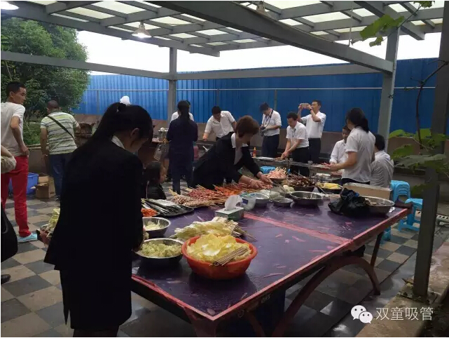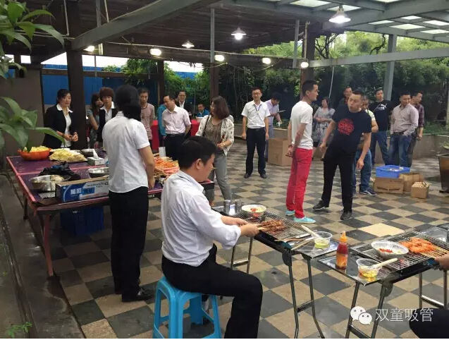 來到屋頂花園,來自我們生產(chǎn)車間的廠長和三個(gè)車間主任擔(dān)當(dāng)起了為客戶們服務(wù)燒烤的工作,我們的生產(chǎn)和銷售其實(shí)是一條線上的呢!呀!快看!烤全羊都上來啦!