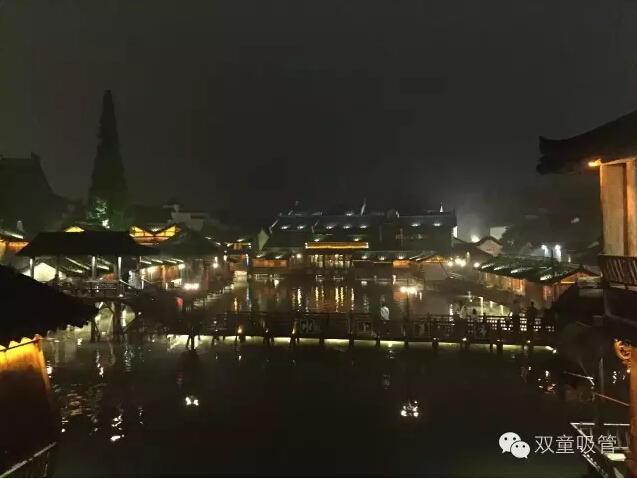 晚上,我們?nèi)胱×酥袊?guó)最后的枕水人家---烏鎮(zhèn)西柵景區(qū)。它是烏鎮(zhèn)投入十?dāng)?shù)億資金重新修繕的一處新水鄉(xiāng)景觀,內(nèi)有明清建筑25萬(wàn)平方米,街區(qū)內(nèi)分布著老郵局、三寸金蓮館、曬市場(chǎng)、露天影院、酒吧……