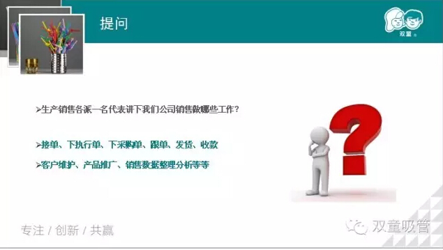為了鞏固這堂課的內(nèi)容,咱們的朱講師也是讓童鞋們活學(xué)活用,通過(guò)一些具體的銷售訂單讓各部門的童鞋們回答自己所要做的工作。通過(guò)這次學(xué)習(xí)會(huì),也是為了增進(jìn)各部門之間的溝通,減少工作中的誤會(huì),提高工作效率。