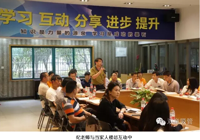參觀完畢后,大家在九樓閣開了一個小型的“學(xué)習(xí)會”。這不,一開場,管理精英們和樓總就進行了積極的互動,從企業(yè)精細(xì)化管理的各個方面向樓總發(fā)問,當(dāng)家人樓總也是拿出各類資料為大家進行了詳細(xì)的解答。