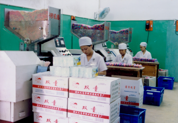 1997年初,隨著工廠的逐步壯大,“雙童”從原先的小平房搬到了樓總自建的五間廠房里,而且還租用了村里大量的民房作為生產(chǎn)車(chē)間和員工寢室,生產(chǎn)設(shè)備也從原來(lái)的兩臺(tái)增加到了十幾臺(tái),車(chē)間生產(chǎn)人員和產(chǎn)能都有了大步提升。由于楊小慧的踏實(shí)肯干,年僅19歲的她被提拔為成型車(chē)間班長(zhǎng),后面又調(diào)到包裝車(chē)間擔(dān)任班長(zhǎng)。