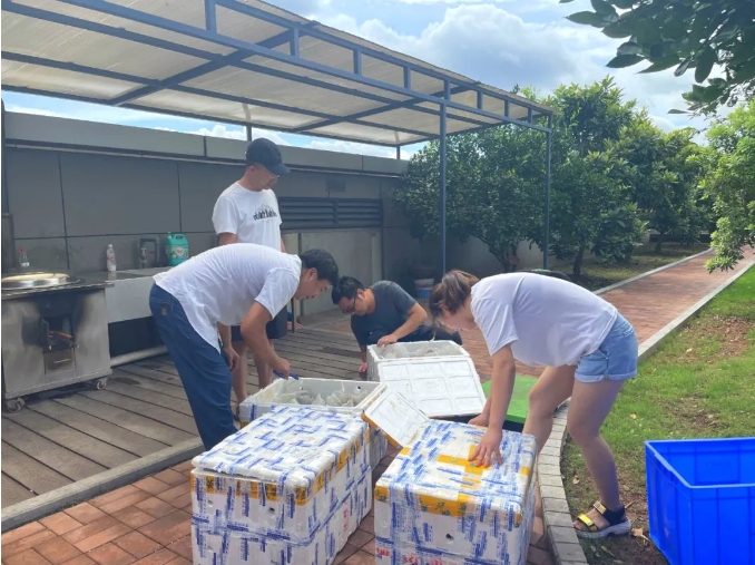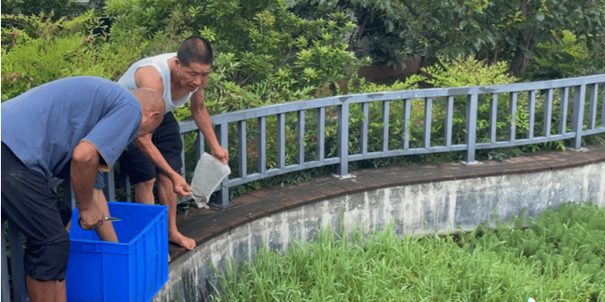 抓住他們真是費了不少勁!在經(jīng)過后勤小姐姐們的細心消毒后,終于可以投放啦,看著一袋又一袋塑料網(wǎng)被解開,小甲魚們紛紛扎入池塘當中。吸管妞已經(jīng)默默期盼著來年收獲一大堆甲魚蛋啦~~