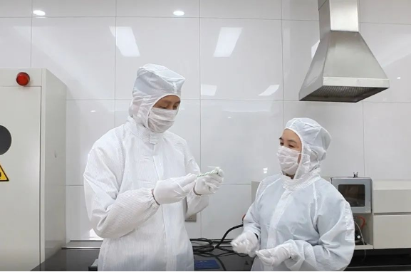 陳學(xué)森和同事在實(shí)驗(yàn)室對產(chǎn)品進(jìn)行檢驗(yàn)
