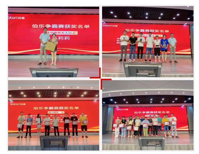優(yōu)秀員工表彰結(jié)束后,又迎來(lái)了“伯樂(lè)爭(zhēng)霸賽”的頒獎(jiǎng)環(huán)節(jié)!都說(shuō)一家企業(yè)對(duì)待員工到底好不好,就看員工愿不愿意把親朋好友介紹過(guò)來(lái)。今年的2月份,“雙童”再次啟動(dòng)了伯樂(lè)爭(zhēng)霸賽活動(dòng),鼓勵(lì)大家“以老帶新”,讓更多的小伙伴們加入到“雙童”的大家庭中。有不少的“伯樂(lè)”都紛紛參與到活動(dòng)之中,在表彰大會(huì)上,雙童”也為他們送上了精心準(zhǔn)備的大禮!
