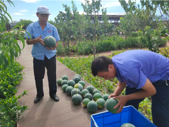 這些西瓜在園丁叔叔的辛勤栽培下,個(gè)個(gè)都長得是又大又紅。炎炎夏日,來一口清爽的大西瓜,簡直是夏天最好的儀式!給員工們送上爽口的水果,讓大家不僅吃著甜,更是心里甜!