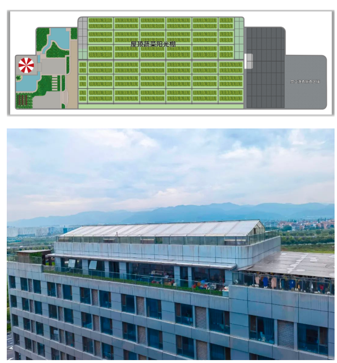 在一期行政樓的屋頂上,則是一片菜園,這里種植了十多個品種的有機蔬菜。走進菜園,南瓜、黃瓜、茄子和絲瓜等蔬菜掛滿枝頭,豐收時節(jié)“雙童人”身處工業(yè)區(qū)也能體會別樣的田園樂趣!