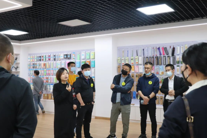 在第三創(chuàng)業(yè)體樣品間,孟竹燕與雙童商學(xué)院學(xué)員們介紹