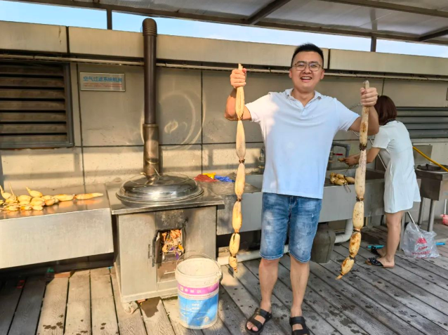 這么多蓮藕怎么處理呢?當(dāng)然是分享給員工們啦!在“雙童”有不少小伙伴們都是以家庭為單位在這里生活,“雙童”也在家庭房中為大家配備了溫馨的現(xiàn)代化廚房。