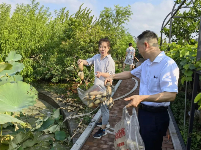 為了給員工家庭的餐桌上,添道好菜。剛采摘完蓮藕,后勤部門(mén)就立馬通知了這些員工家庭前來(lái)領(lǐng)取白白胖胖的大蓮藕啦!