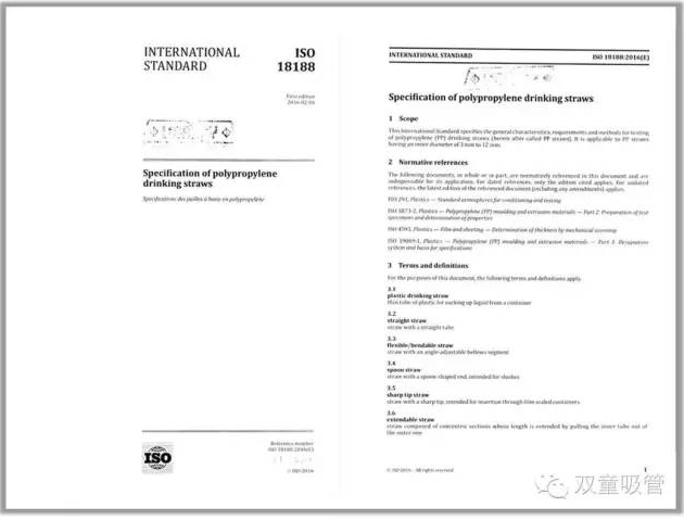 2016年 | 《聚丙烯飲用吸管規(guī)范》ISO國際標(biāo)準(zhǔn) |