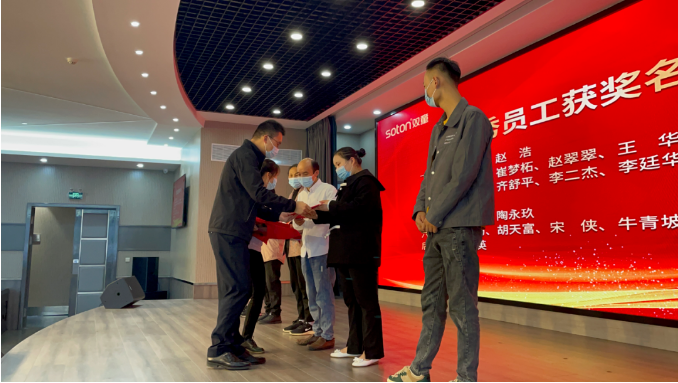 當(dāng)頒獎音樂響起時,現(xiàn)場所有員工鼓掌表示祝賀,總經(jīng)理李二橋?yàn)椤皟?yōu)秀員工”們頒發(fā)榮譽(yù)證書和厚厚的激勵紅包。在場員工們都深深地感受到了公司對一線員工的重視及肯定!相信對每一位“優(yōu)秀員工”來說都意義非凡,對全體員工來說也是莫大的鼓舞和激勵!