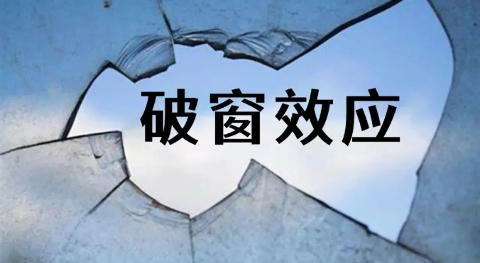 一個房子如果窗戶破了,沒有人去修補,隔不久,其它的窗戶也會莫名其妙的被人打破;一面墻,如果出現一些涂鴉沒有清洗掉,很快的,墻上就布滿了亂七八糟的筆跡。