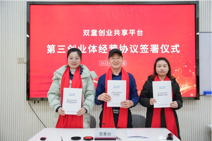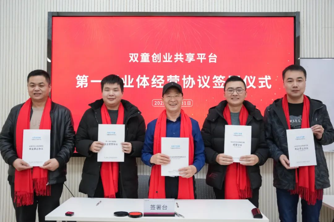 “雙童創(chuàng)業(yè)共享平臺”經(jīng)營協(xié)議簽署儀式