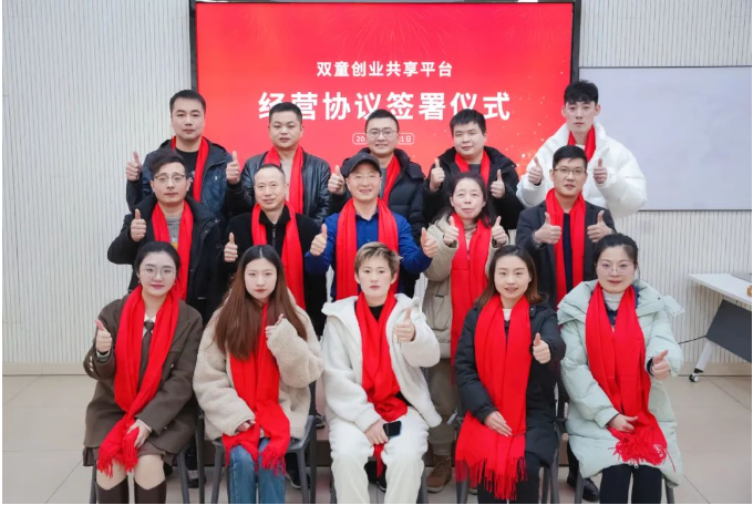 “雙童創(chuàng)業(yè)共享平臺”經(jīng)營協(xié)議簽署儀式合影