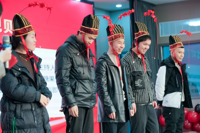 “雙童”人才年年有,今年特別多!看,猜猜這幾個(gè)被套里的人都是誰?跟隨著背景音樂的律動,生產(chǎn)部和銷售部的這四位人才代表們,來了一場熱舞,現(xiàn)場氣氛一下子被推向了高潮!搞怪的動作更是引得臺下觀眾們笑聲連連,掌聲不斷。