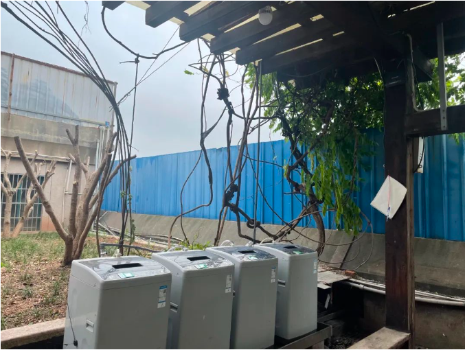 除了二期廠區(qū)之外,2022年6月,“雙童”董事長樓仲平在改造一期廠區(qū)九樓的小花園時(shí),發(fā)現(xiàn)原有的洗衣機(jī)已經(jīng)有些破舊了。為此,樓仲平專門讓公司騰出了一個(gè)荒廢的小房間,經(jīng)過一番加班加點(diǎn)的裝修改造,一間精致整潔的洗衣房就在“雙童”一期廠區(qū)橫空出世啦!