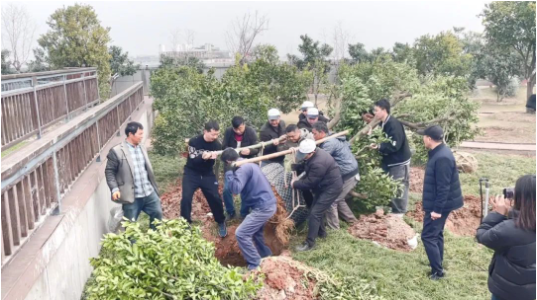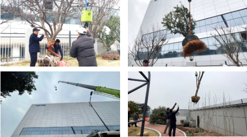 其實啊,主要是因為購買的果樹都是重量級“嘉賓”,所以“雙童”都是通過大吊機將這些果樹運送上空中生態(tài)園的!我們的當家人樓總更是親自從旁指揮,護送大樹成功上樓!