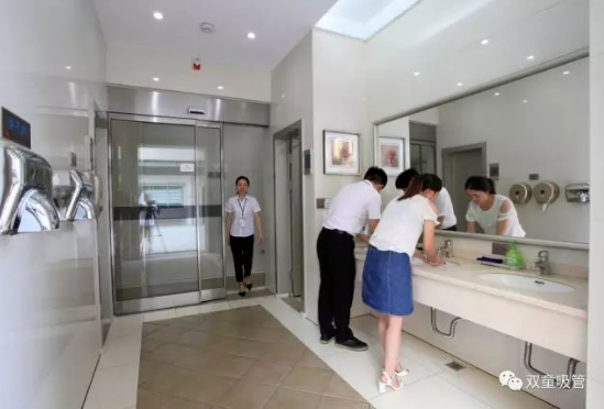除此之外,“雙童”的衛(wèi)生間內(nèi)還有許多提示引導(dǎo)的標(biāo)示牌,每個(gè)配件都極為精致!在洗手區(qū),統(tǒng)一配備了洗手液,俯身洗手時(shí),你會(huì)看見墻面上溫馨的提示語:“洗手臺(tái)盆,保持清潔;請(qǐng)勿將大量的水濺出臺(tái)盆濺濕地面”;每個(gè)廁所隔間都有“便后請(qǐng)沖水、素養(yǎng)高低往往體現(xiàn)在關(guān)上門自己獨(dú)處之時(shí)”的溫馨提示,引導(dǎo)員工提升個(gè)人素質(zhì)!