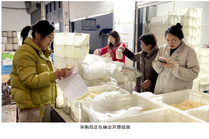 除此之外,食品安全是員工最基本的訴求,也是后勤團(tuán)隊(duì)工作的著力點(diǎn)。在小分隊(duì)采購(gòu)過(guò)程中,還需要根據(jù)《雙童食堂食材采購(gòu)標(biāo)準(zhǔn)》,對(duì)供應(yīng)商的《生產(chǎn)營(yíng)業(yè)執(zhí)照》、《食品流通許可證》和《產(chǎn)品質(zhì)量監(jiān)督檢查合格證》等相關(guān)證件進(jìn)行考察,然后根據(jù)價(jià)格高低、質(zhì)量?jī)?yōu)劣進(jìn)行篩選,從而選擇出最符合食堂需求的原材料。
