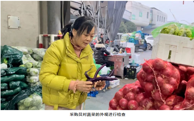 采購(gòu)現(xiàn)場(chǎng),每一種菜品都要經(jīng)過(guò)采購(gòu)員的嚴(yán)格檢查,不僅是要對(duì)品種進(jìn)行對(duì)比,選出最好吃的種類,還要考量菜品的質(zhì)量,外觀得要好看,不管是茄子還是土豆都要有“顏值”。