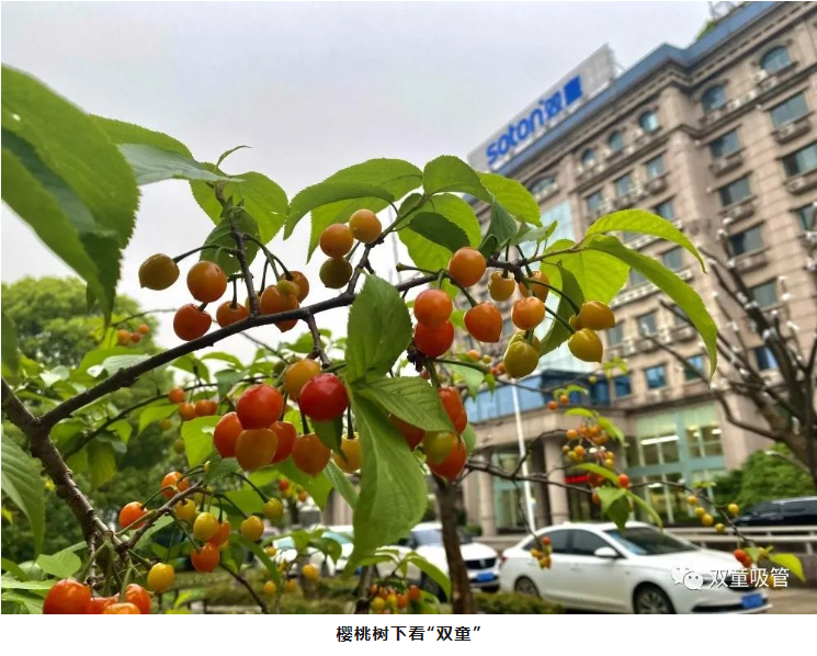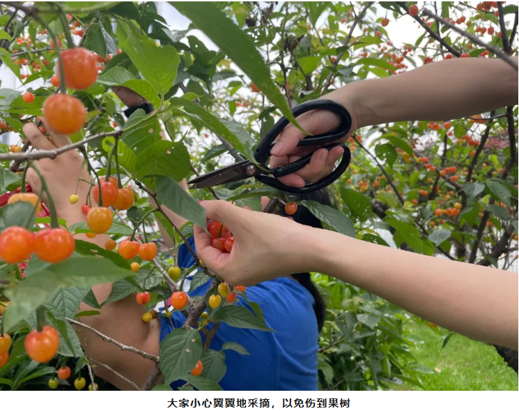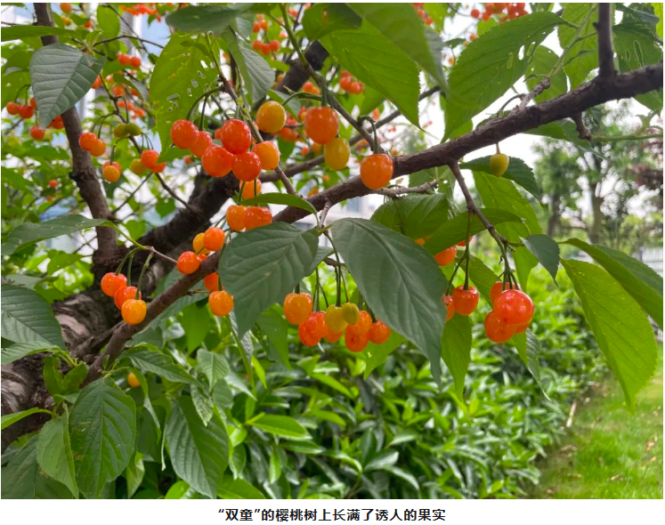 在“雙童”,水果都是員工共享,等到櫻桃成熟了,甜蜜的果實(shí)就要大家一起分享。挑選一個晴朗的日子,細(xì)心地把果實(shí)采摘下來,不僅是品嘗美味,也增進(jìn)了同事間的情誼。