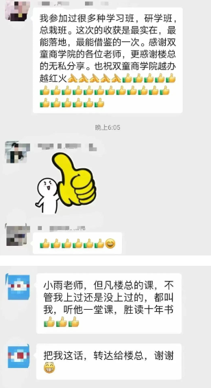 游學(xué)的最后是交流互動環(huán)節(jié),“雙童”董事長樓仲平或總經(jīng)理李二橋,將會與大家進(jìn)行分享,以問答互動的形式展開,為學(xué)員們解答參觀過程中疑惑的問題。在你來我往的“思維碰撞”過程中,避免走馬觀花,找到“雙童”經(jīng)營過程中的科學(xué)管理邏輯,實現(xiàn)創(chuàng)業(yè)思維的升階!